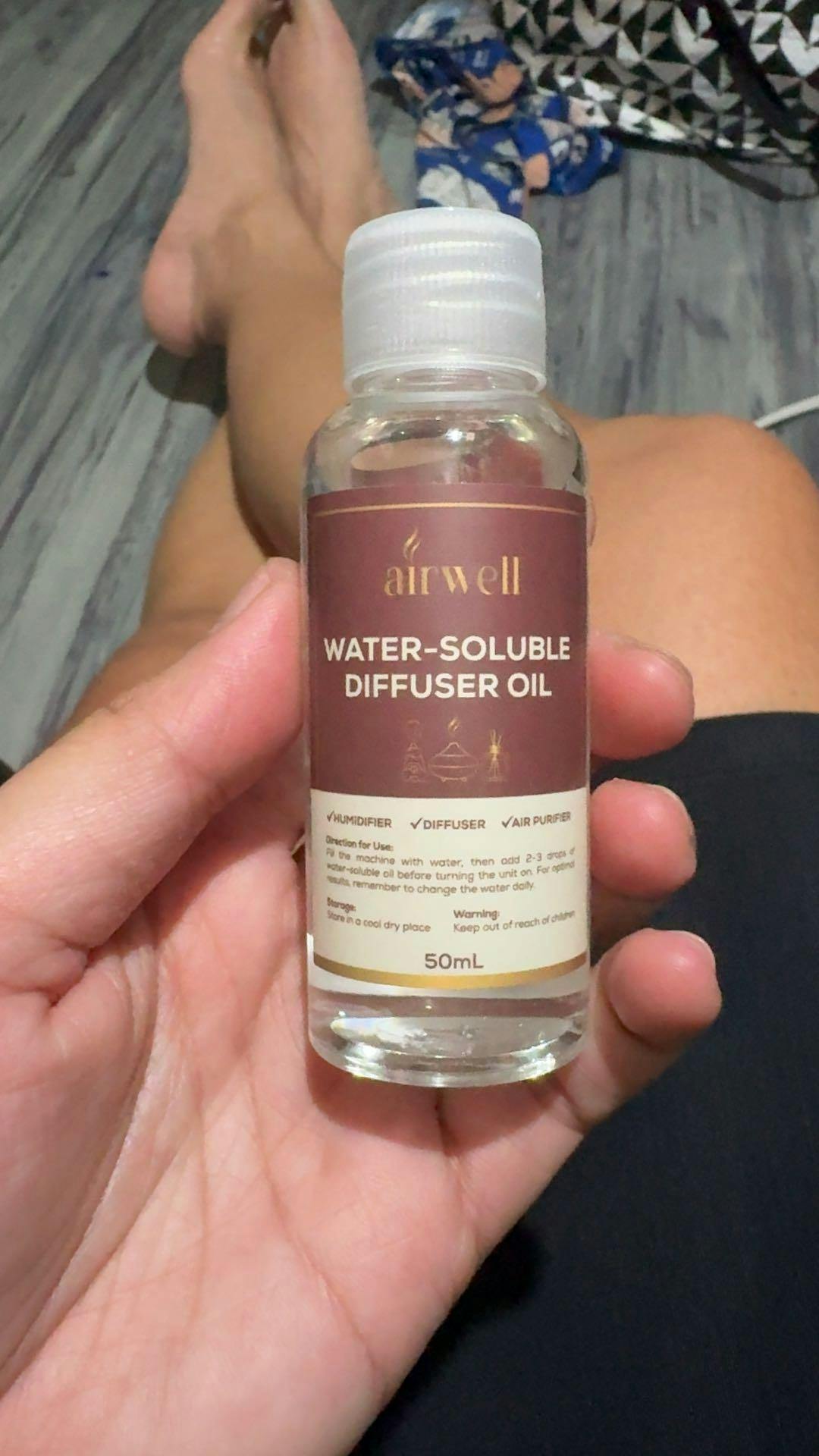 2. Add 5–10 drops of Airwell water-soluble (adjust based on room size and scent preference)